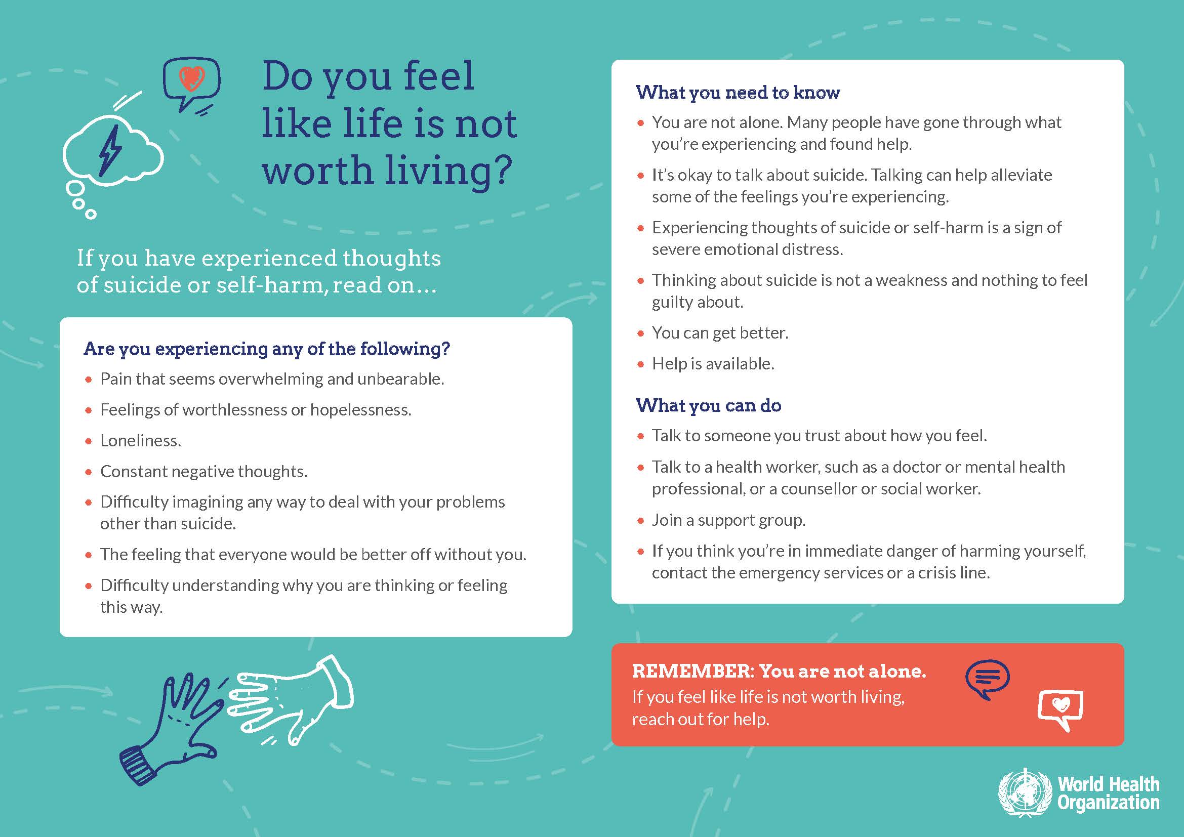 - Thinking about suicide is not a weakness and nothing to feel guilty about.